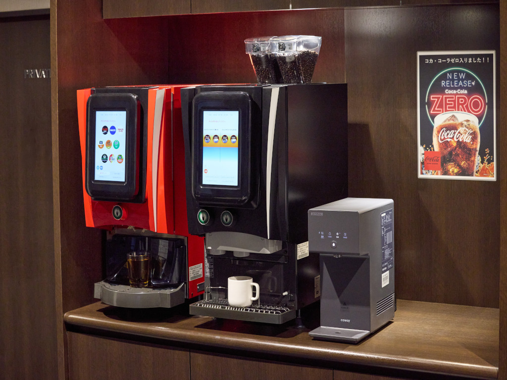 1階ラウンジにて夜22時まで無料ドリンクバー利用できます♪ ※お部屋にお持ち込みもOK!チェックイン手続き後のお部屋に入る前やお出かけ前後にお立ち寄りください。